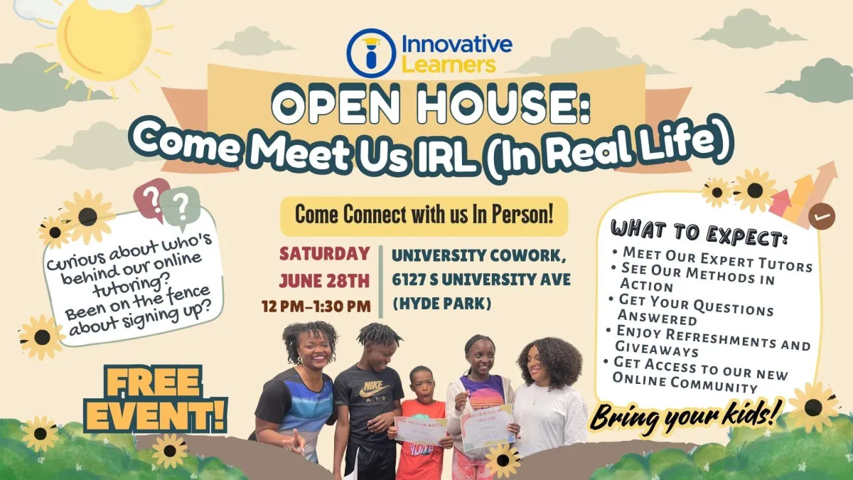 We tutor 1st-10th graders in reading, writing and math. We’ll have different tutors there to discuss how we can help with specific academic needs. All of our tutoring happens virtually.